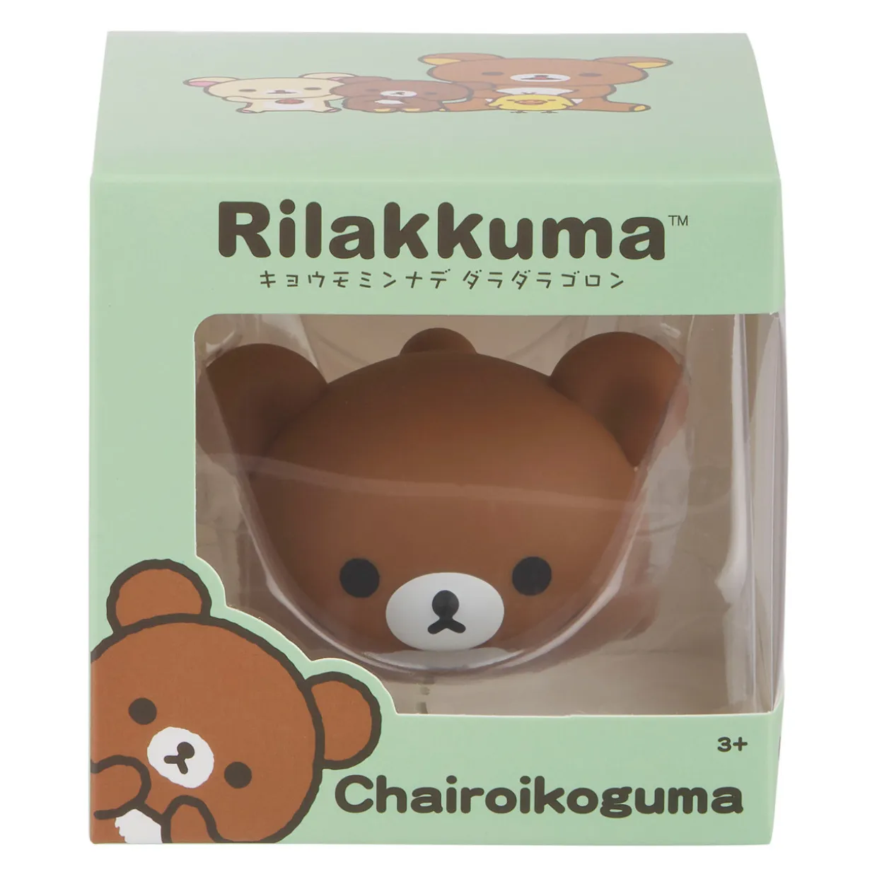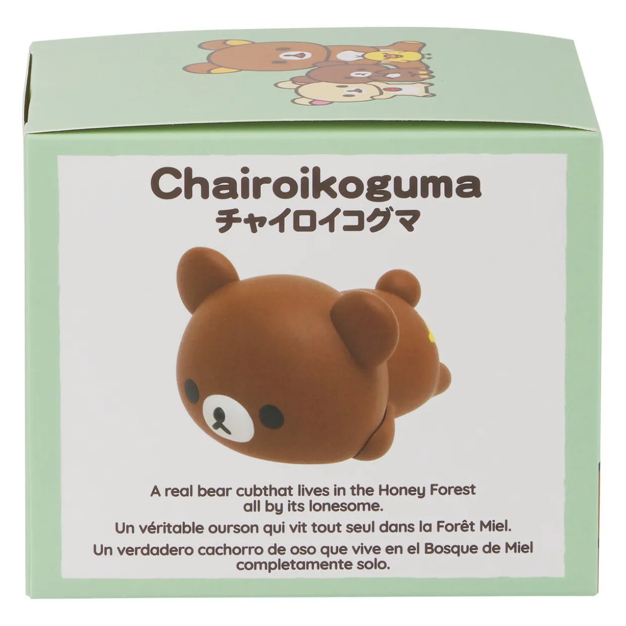 Korilakkuma met Chairoikoguma while on vacation with Rilakkuma and Kiiroitori in the “Honey Forest”. It has a bushy chest and when it opens it’s mouth reveals fangs! It has bear prints on the soles of each foot and its body smells like sweet honey. Chairoikoguma, (or Kogumachan) is usually seen walking on all fours, even if he can stand up straight like his partners. The four friends all climb the trees together, play tag, and sometimes tend to fight over honey.